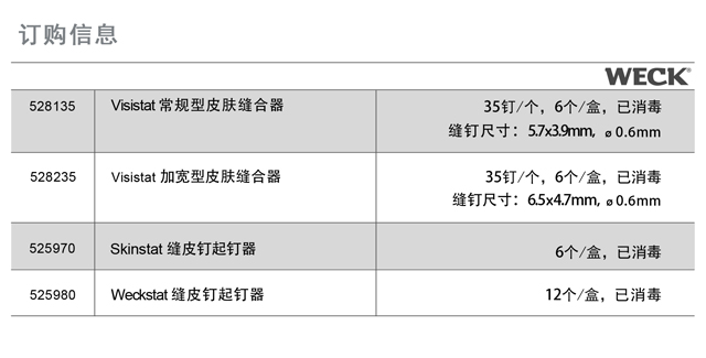 作為泰利福旗下的外科Weck系列產(chǎn)品之一威客皮膚縫合器,同時滿足了外科醫(yī)生對于醫(yī)用器械安全易用的需求以及患者快速恢復(fù)的愿望。使用視頻請戳此鏈接