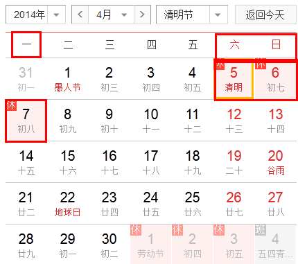 2014年北京華康普美科技有限公司“清明節(jié)”假期為: 4月5日(周六)至4月7日(周一)放假(共3天),4月8日(星期二)正常上班。