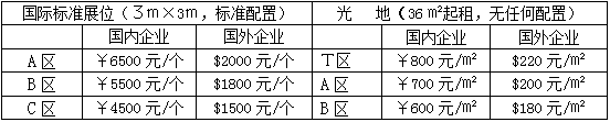 2、展位費指展商租用標(biāo)準(zhǔn)展位或光地的費用,不包含展品的運輸倉儲、吊裝就位、展具租賃、現(xiàn)場水電氣租用、特別裝修搭建及其管理費等費用。