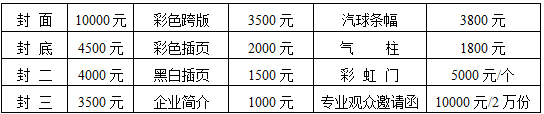 3、技術(shù)講座提供講座場地、照明、音響、桌椅、飲水、投影儀,不包含會場布置或其他特別安排的費用。會刊及展會現(xiàn)場廣告:不論您參加展會或未參展,均可通過以下形式發(fā)布廣告: