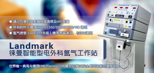 世界唯一具有與德國ERBE的endocut(內(nèi)鏡電切)模式完全相同功能的高頻電刀:通過方便的換能器轉(zhuǎn)換高頻及APC能量; 所有附件與德國ERBE ICC350/200/APC300/VIO 通用; 氬氣噴管(APB治療電極)德國原裝進(jìn)口,與ERBE通用。