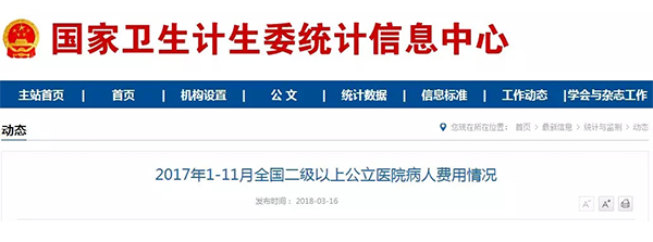 3月16日,國(guó)家衛(wèi)計(jì)委發(fā)布2017年1-11月的全國(guó)二級(jí)以上公立醫(yī)院病人費(fèi)用情況、全國(guó)醫(yī)療服務(wù)情況、全國(guó)醫(yī)療衛(wèi)生機(jī)構(gòu)數(shù)。