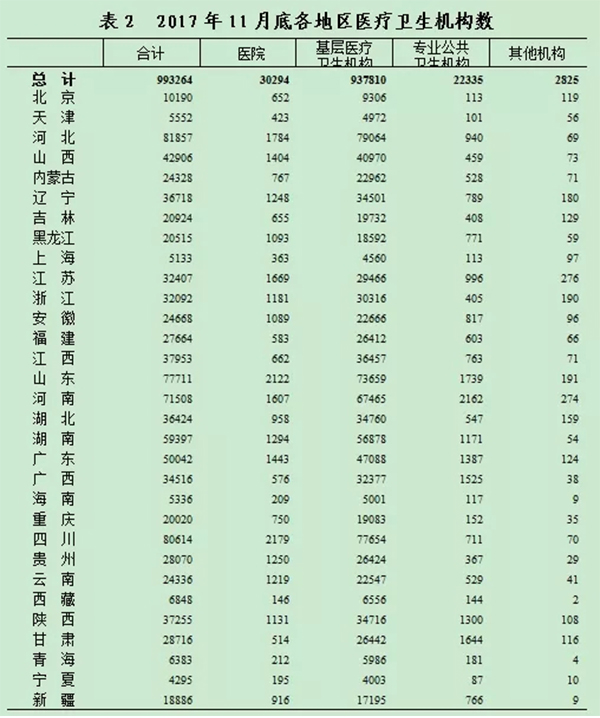 2017年1-11月全國(guó)醫(yī)療衛(wèi)生機(jī)構(gòu)數(shù)