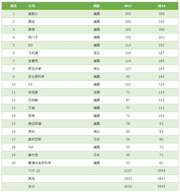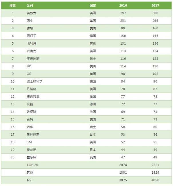 2018全球醫(yī)療器械公司20強(qiáng)名單公布