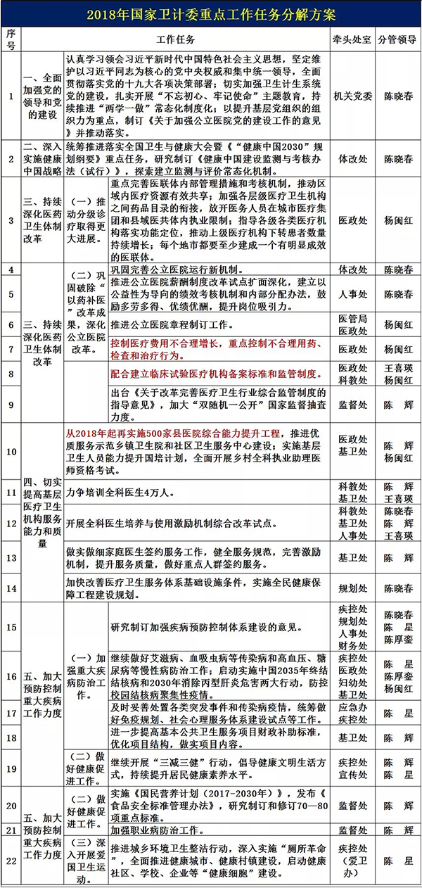 近日,國家衛(wèi)計委發(fā)布了《國家衛(wèi)生計生委關(guān)于印發(fā)2018年衛(wèi)生計生重點工作任務(wù)及分工方案的通知》(國衛(wèi)辦函〔2018〕25號)》。(以下簡稱《通知》)。
