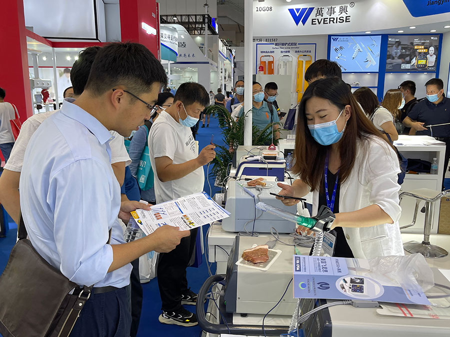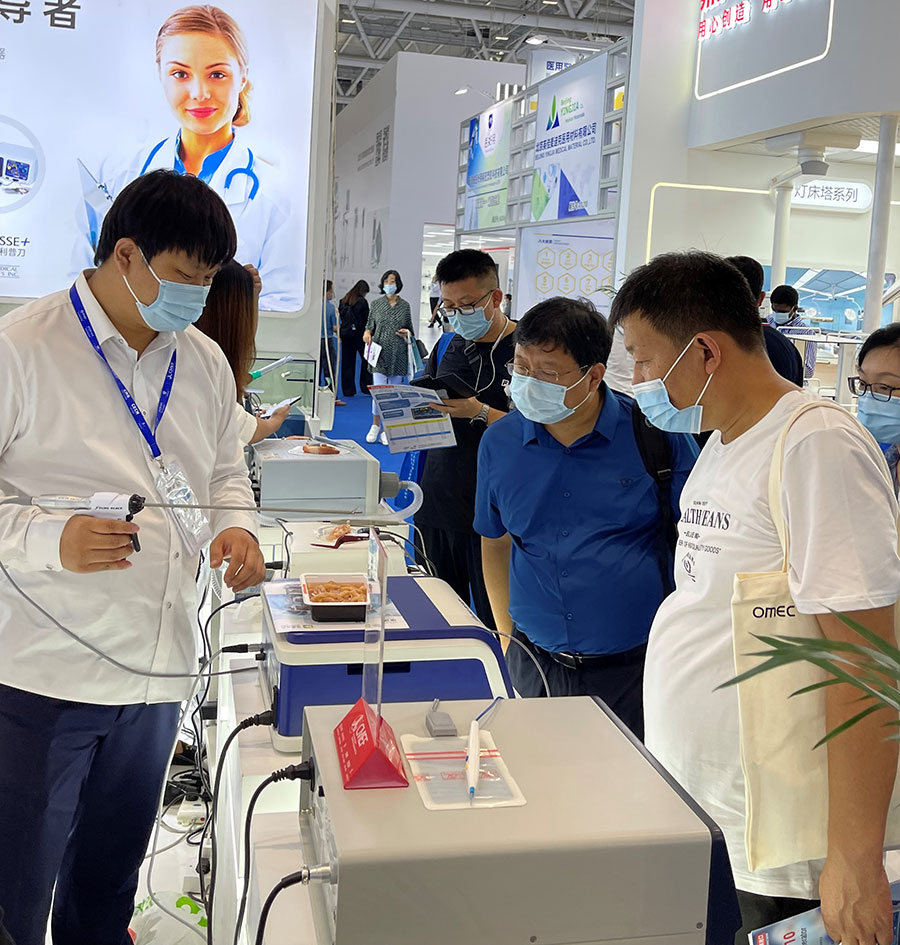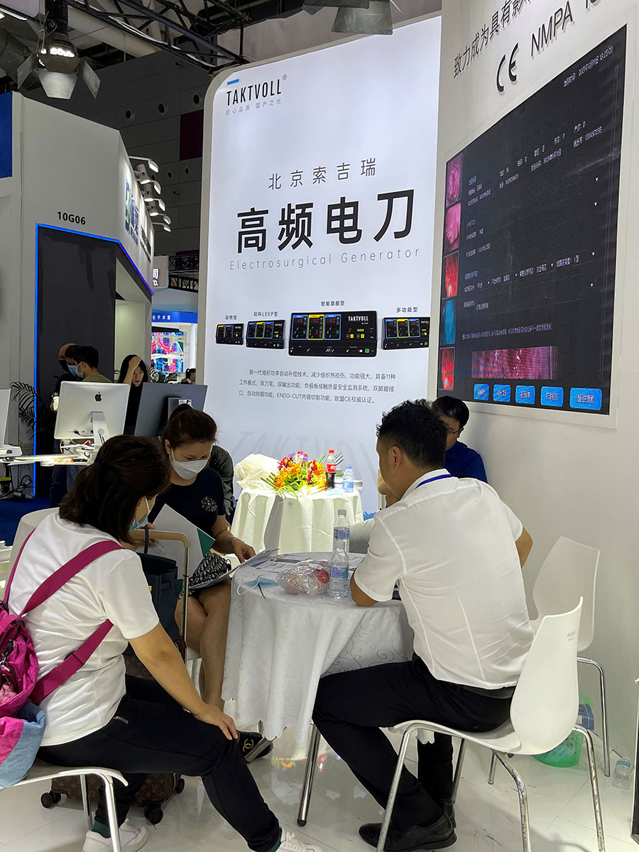此次,華康普美攜自主研發(fā)品牌TAKTVOLL高頻電刀及利普刀,高清陰道鏡系列及吸煙器等產(chǎn)品亮相本次展會,吸引了大量的觀眾駐足咨詢……