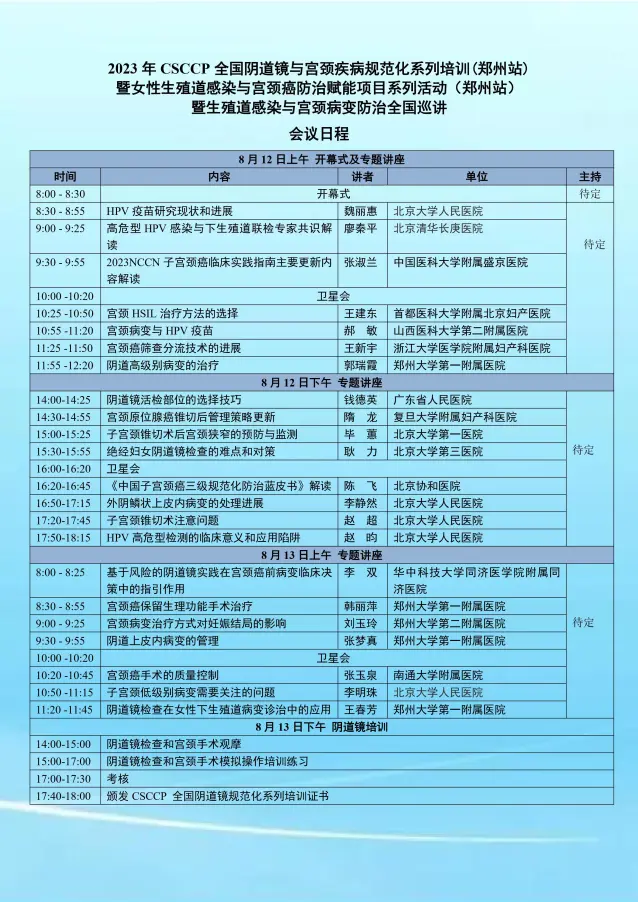 2023年CSCCP全國陰道鏡與宮頸疾病規(guī)范化系列培訓(xùn)通知(鄭州站)
