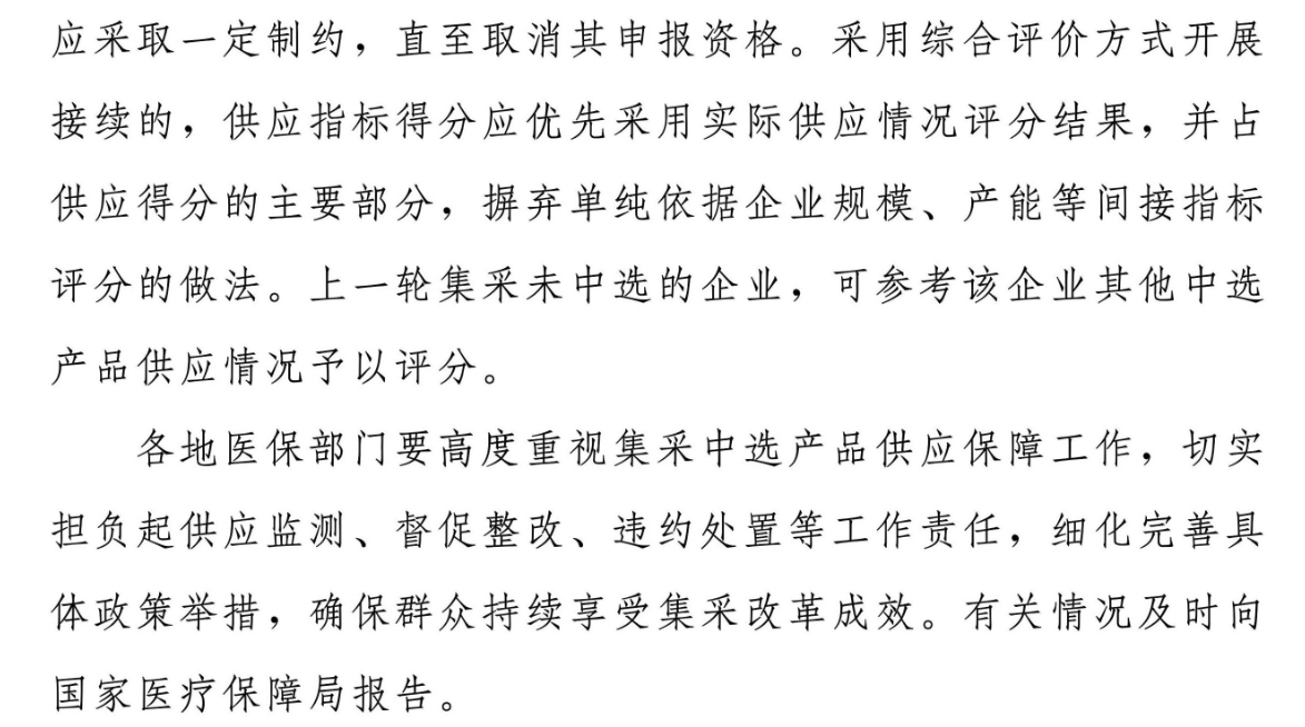 據(jù)觀察,文件中進(jìn)一步明確了中選產(chǎn)品供應(yīng)保障要求,醫(yī)藥企業(yè)部分行為可能導(dǎo)致其失去集采中選資格。