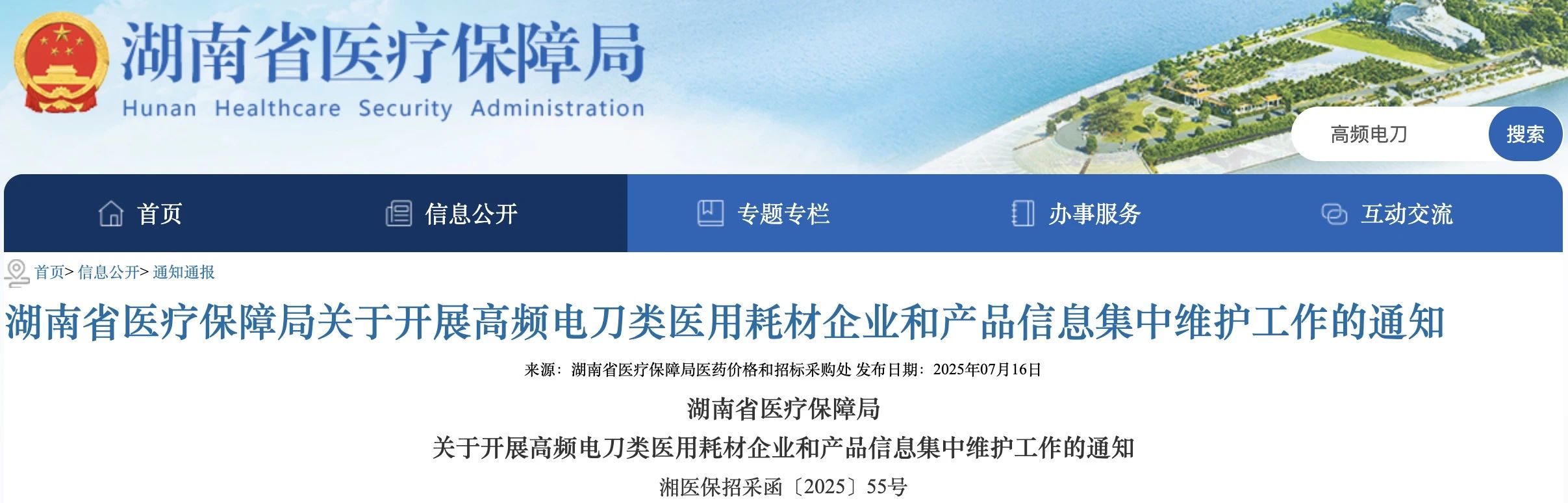 7月16日,湖南醫(yī)保局發(fā)布《關(guān)于開展高頻電刀類醫(yī)用耗材企業(yè)和產(chǎn)品信息集中維護(hù)工作的通知》(簡稱《通知》)。