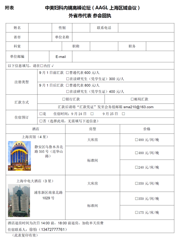 需要代為預訂住宿的代表請?zhí)顚?ldquo;參會回執(zhí)”(見附表),或登錄訂房網(wǎng)站http://www.opttrip.com/meeting/default.aspx