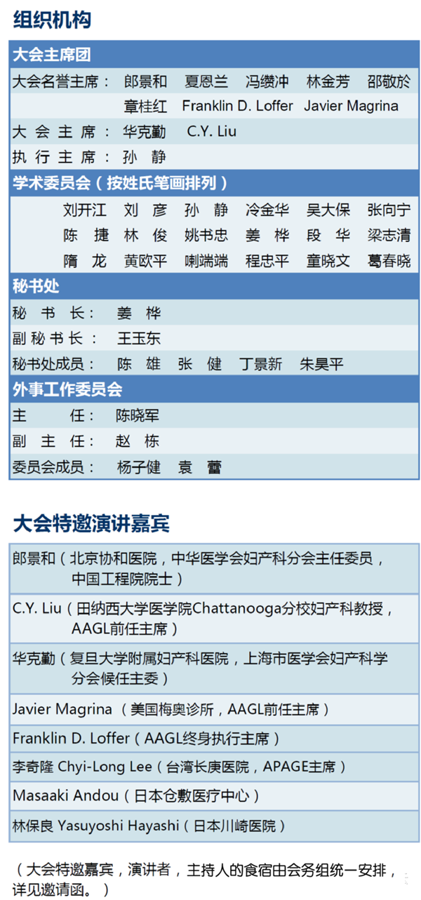 我們謹代表中美婦科內鏡高峰論壇組委會,誠摯地歡迎各位婦產(chǎn)科界同道參加2015年9月25-26日在上海國際會議中心召開的“中美婦科內鏡高峰論壇”(AAGL上海區(qū)域會議)!