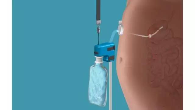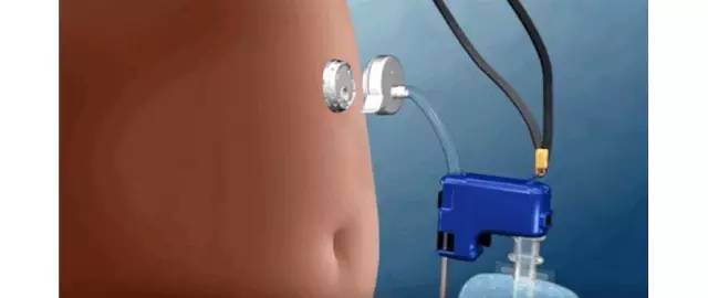 在AspireAssist的使用過程中,會有一條導(dǎo)管經(jīng)腹部插入患者胃里,它通過一個“端口閥”進(jìn)入,端口閥位于患者肚臍的正上方,患者可以打開、關(guān)閉閥門來排出胃里的食物。用餐后20至30分鐘,病人才能將泵與閥門連接起來,胃中的食糜就可以被導(dǎo)出并且直接排進(jìn)廁所廁所,此過程大約耗時10分鐘。