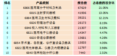 表2-2 報告數(shù)量排名前十位的無源醫(yī)療器械