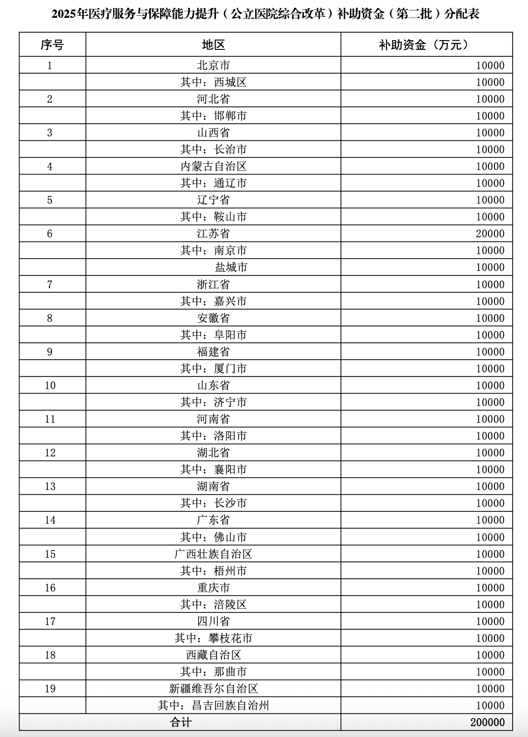 今年7月,財(cái)政部對2025年中央財(cái)政支持公立醫(yī)院改革與高質(zhì)量發(fā)展示范項(xiàng)目競爭性評審結(jié)果進(jìn)行了公示。本年度共有19個(gè)省的20個(gè)城市入選,分別為北京西城、河北邯鄲、山西長治、內(nèi)蒙古通遼、遼寧鞍山、江蘇南京、江蘇鹽城、浙江嘉興、安徽阜陽、福建廈門、山東濟(jì)寧、河南洛陽、湖北襄陽、湖南長沙、廣東佛山、廣西梧州、重慶涪陵、四川攀枝花、西藏那曲、新疆昌吉。