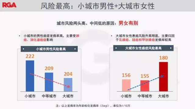 隨著城市化的發(fā)展,男性癌癥風險逐漸降低,小城市男性風險最高;