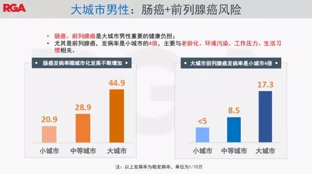 腸癌和前列腺癌:從小城市到大城市,發(fā)病趨勢增加趨勢明顯。