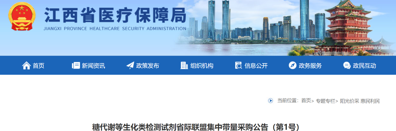 11月4日,江西醫(yī)保局發(fā)布《糖代謝等生化類檢測試劑省際聯(lián)盟集中帶量采購公告(第1號)》,公布了正式采購文件和首年采購需求量(完整見文末)。