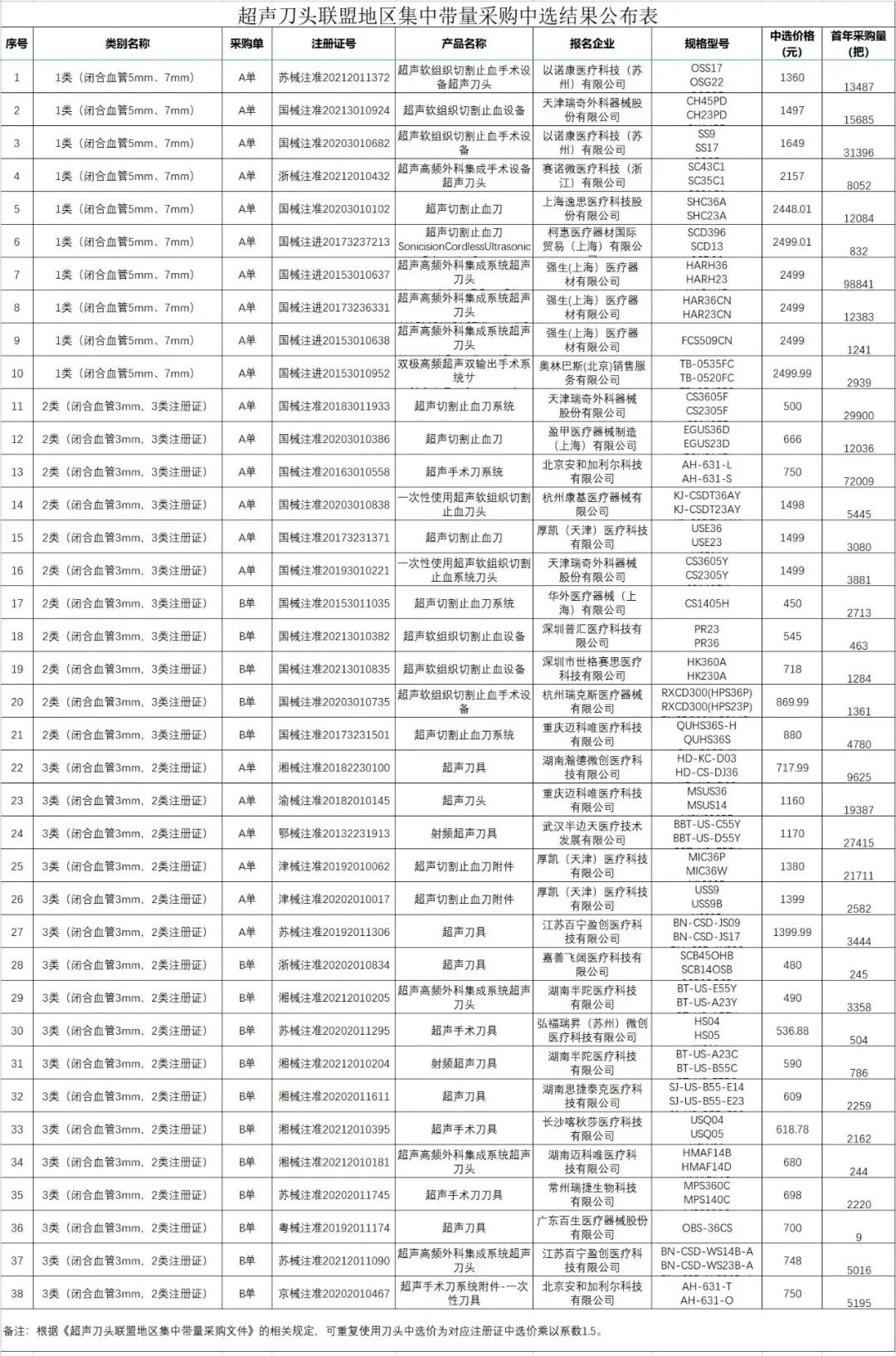 近日,深圳市公共資源交易中心發(fā)布《關(guān)于公布超聲刀頭及預(yù)充式導(dǎo)管沖洗器集中帶量采購中選結(jié)果的公告》,其中公布了各企業(yè)所有中選產(chǎn)品的中選價(jià)格和首年采購量(文末附表單)。
