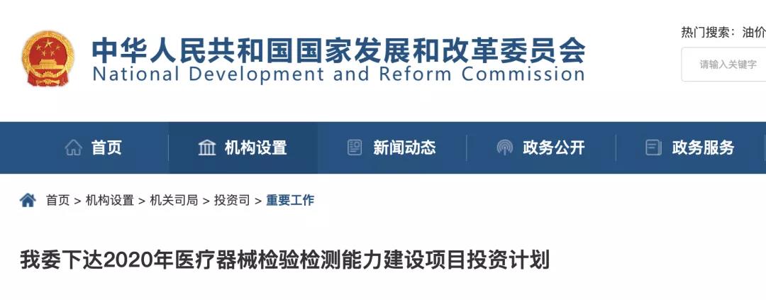 日前,據(jù)國(guó)家發(fā)改委消息,根據(jù)國(guó)家藥品安全規(guī)劃,近日我委向京津冀協(xié)同發(fā)展、“一帶一路”建設(shè)、長(zhǎng)江經(jīng)濟(jì)帶發(fā)展、粵港澳大灣區(qū)建設(shè)、長(zhǎng)三角一體化發(fā)展等國(guó)家發(fā)展戰(zhàn)略區(qū)域有關(guān)省份下達(dá)了2020年醫(yī)療器械檢測(cè)能力項(xiàng)目投資計(jì)劃。