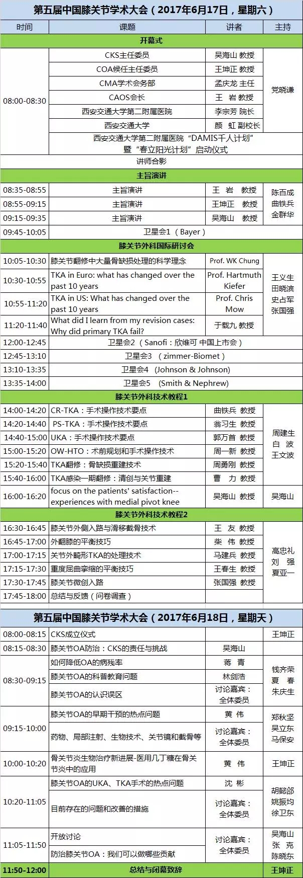 為促進(jìn)關(guān)節(jié)外科領(lǐng)域的學(xué)術(shù)教育與交流,凝聚最廣泛的中國關(guān)節(jié)外科專家更好地服務(wù)于病患,同時(shí)加強(qiáng)與國際學(xué)術(shù)團(tuán)體的合作,由中華醫(yī)學(xué)會(huì)、中華醫(yī)學(xué)會(huì)骨科分會(huì)關(guān)節(jié)外科學(xué)組主辦的第五屆中國膝關(guān)節(jié)外科學(xué)術(shù)大會(huì)(The 5th Chinese Knee Society Conference)于2017年6月16-18日在陜西省西安市西安曲江惠賓苑賓館舉行,會(huì)議由西安交通大學(xué)醫(yī)學(xué)部關(guān)節(jié)外科中心、西安交通大學(xué)第二附屬醫(yī)院承辦。本次大會(huì)是大中華地區(qū)膝關(guān)節(jié)領(lǐng)域的最高端盛會(huì),大會(huì)邀請(qǐng)了膝關(guān)節(jié)外科領(lǐng)域的眾多專家,涵蓋了中國大陸及港臺(tái)大多數(shù)膝關(guān)節(jié)外科中心以及歐美地區(qū)知名中心,旨在推動(dòng)中國膝關(guān)節(jié)外科事業(yè)的發(fā)展。
