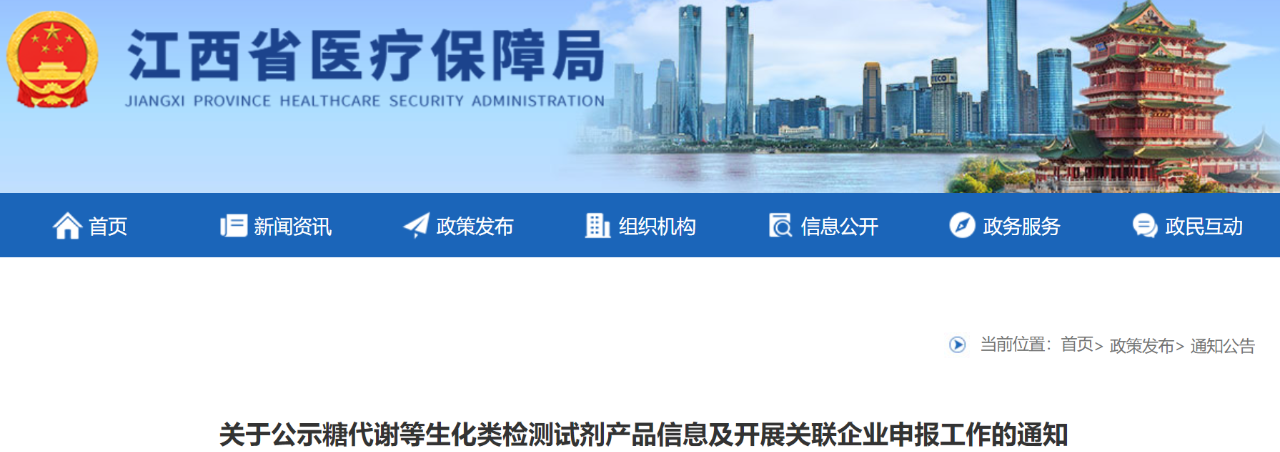 近日,江西醫(yī)保局發(fā)布《關(guān)于公示糖代謝等生化類檢測試劑產(chǎn)品信息及開展關(guān)聯(lián)企業(yè)申報工作的通知》(簡稱《通知》)。