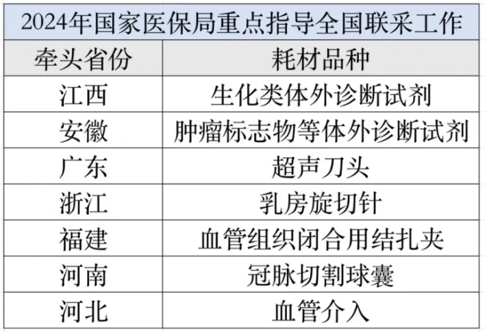 根據(jù)《國(guó)家醫(yī)療保障局辦公室關(guān)于加強(qiáng)區(qū)域協(xié)同做好2024年醫(yī)藥集中采購(gòu)提質(zhì)擴(kuò)面的通知》,省級(jí)聯(lián)盟采購(gòu)要進(jìn)一步加強(qiáng)全國(guó)面上協(xié)同,條件具備的提升為全國(guó)性聯(lián)盟采購(gòu),牽頭省份應(yīng)加強(qiáng)與國(guó)家醫(yī)保局溝通協(xié)調(diào),并邀請(qǐng)所有省份參加,形成全國(guó)聯(lián)盟集中采購(gòu)。各省份要抓緊“補(bǔ)缺”,對(duì)止血材料、補(bǔ)片、體外診斷試劑等已有多個(gè)省份開(kāi)展的品種,通過(guò)帶量?jī)r(jià)格聯(lián)動(dòng)等方式納入集采范圍。
