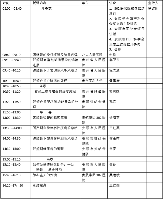 第二屆安順市醫(yī)學(xué)會婦產(chǎn)科學(xué)會會議議程