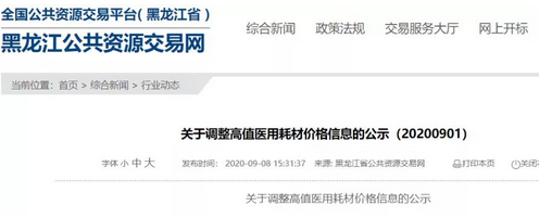 醫(yī)藥網(wǎng)9月11日訊 9月8日,黑龍江公共資源交易網(wǎng)發(fā)布《關(guān)于調(diào)整高值醫(yī)用耗材價(jià)格信息的公示》,公布257種耗材的降價(jià)結(jié)果。