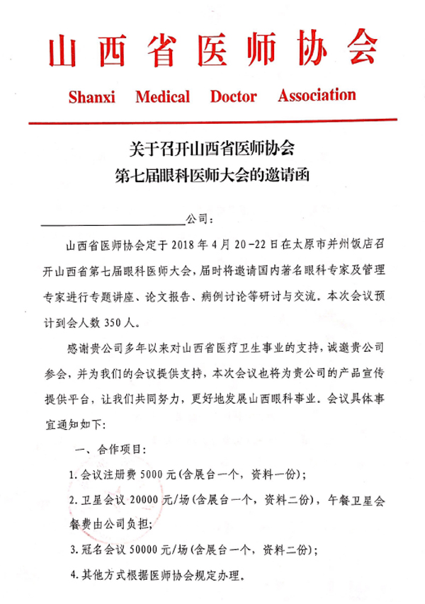 山西省醫(yī)師協(xié)會(huì)第七屆眼科醫(yī)師大會(huì)邀請函
