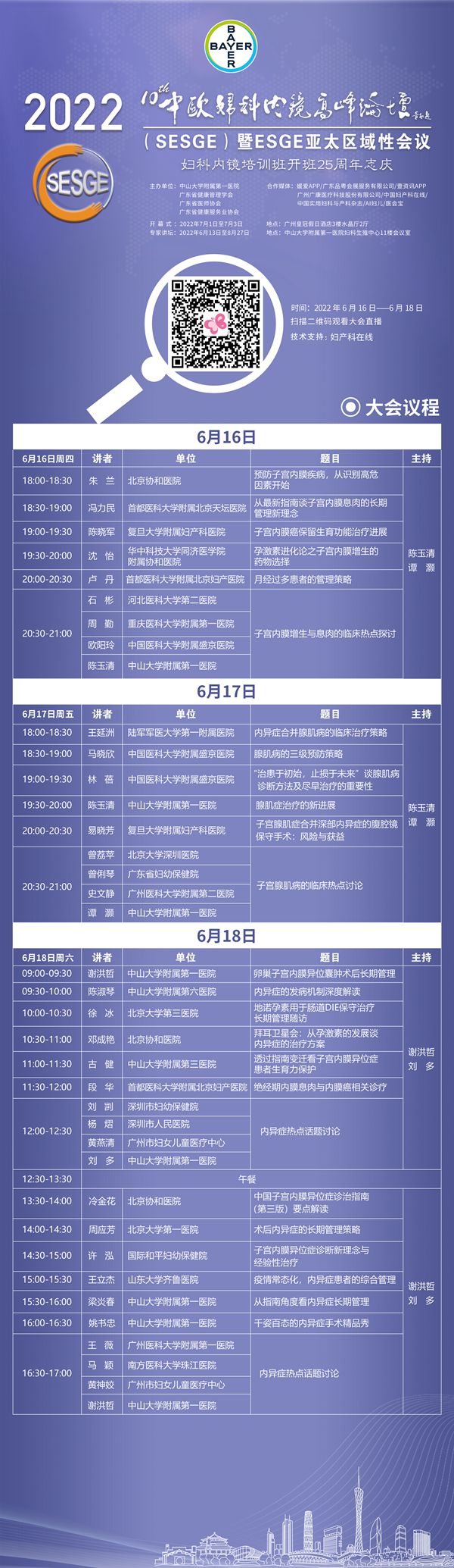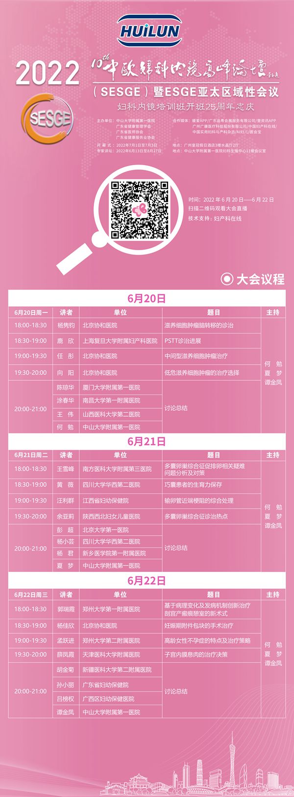 為更好地推動婦科微創(chuàng)手術的發(fā)展,促進業(yè)界深入廣泛交流,由中山大學附屬第一醫(yī)院主辦的“第十屆中歐婦科內鏡高峰論壇(SESGE)”定于2022年6月13日至8月27日召開,由于受新冠肺炎疫情影響,本次會議采用線上線下相結合的方式舉辦。