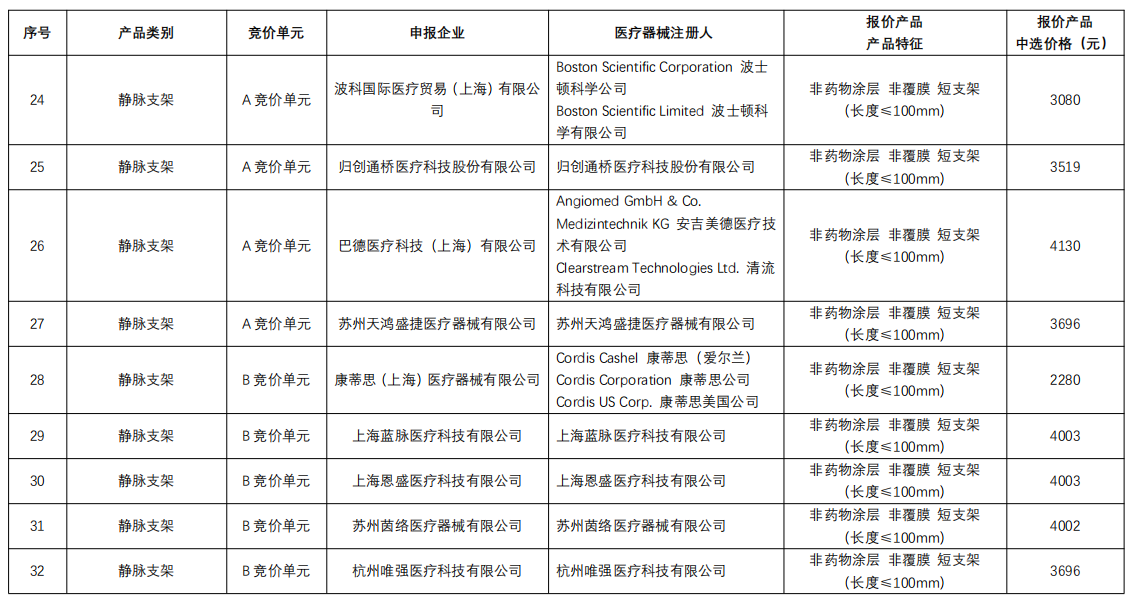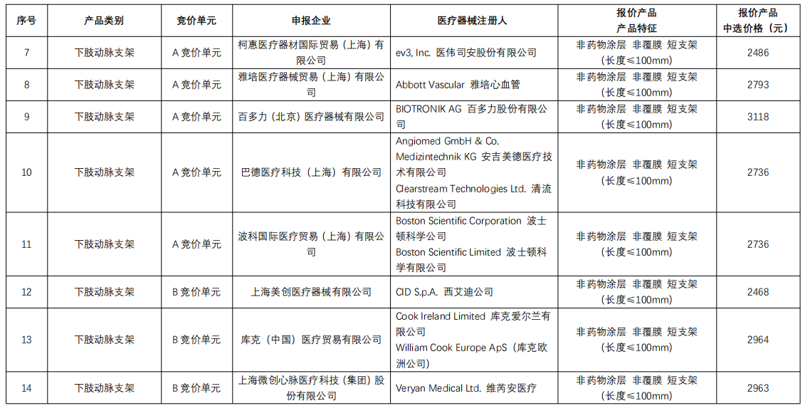 下肢動(dòng)脈支架:庫克醫(yī)療、維芮安醫(yī)療通過規(guī)則二中選,巴德醫(yī)療、波科、先鋒科技、心脈醫(yī)療通過規(guī)則三中選;非下肢動(dòng)脈支架:巴德醫(yī)療通過規(guī)則二中選,波科、心脈醫(yī)療通過規(guī)則三中選;靜脈支架:藍(lán)脈醫(yī)療、恩盛醫(yī)療、茵絡(luò)醫(yī)療通過規(guī)則二中選,天鴻盛捷、唯強(qiáng)醫(yī)療、安泰生物規(guī)則三中選。