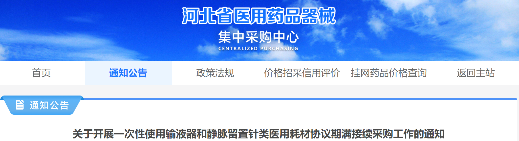 7月1日,河北省醫(yī)用藥品器械集中采購中心發(fā)布《關(guān)于開展一次性使用輸液器和靜脈留置針類醫(yī)用耗材協(xié)議期滿接續(xù)采購工作的通知》(簡稱《通知》)。