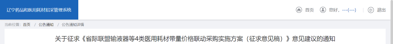 9月6日,遼寧省醫(yī)療機(jī)構(gòu)藥品和醫(yī)用耗材采購聯(lián)盟發(fā)布《省際聯(lián)盟輸液器等4類醫(yī)用耗材帶量價格聯(lián)動采購實施方案(征求意見稿)》(完整附文末)。