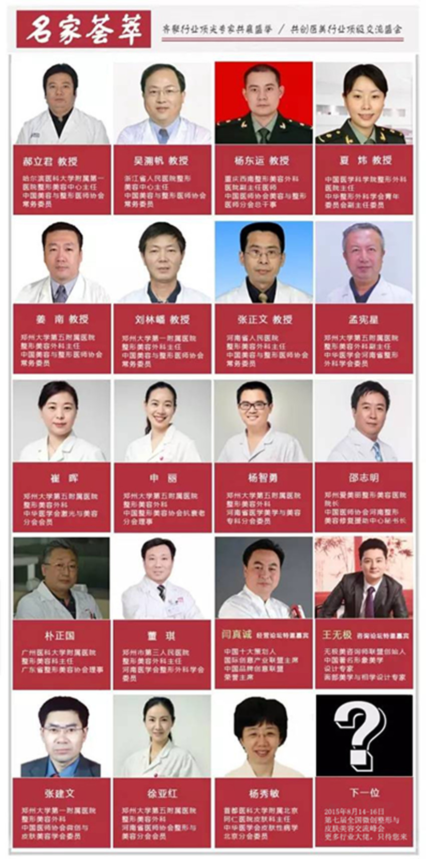 應邀出席此次大會的不僅有眾多國內(nèi)知名教授,還有來自國外的頂級專家。本次會議將從不同角度、不同層面展現(xiàn)國內(nèi)外美容、整形方面的新技術、新進展,同時會議還將分別就激光美容、運營管理、咨詢營銷等方面進行全面、深入的交流和研討。為醫(yī)美界廣大醫(yī)師和同行提供了良好的學習交流和溝通的平臺。