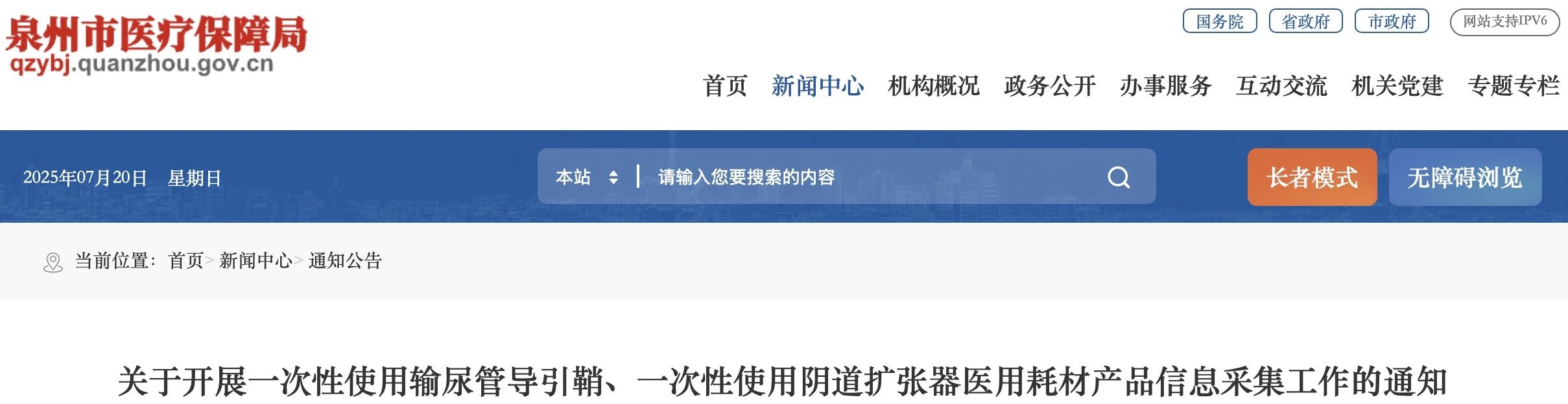 根據(jù)《通知》,此次信息采集的品種范圍包括一次性使用輸尿管導(dǎo)引鞘(須包含鞘管、擴(kuò)張器)和一次性使用陰道擴(kuò)張器,信息維護(hù)時(shí)間為2025年7月18日08:00至7月29日17:00。