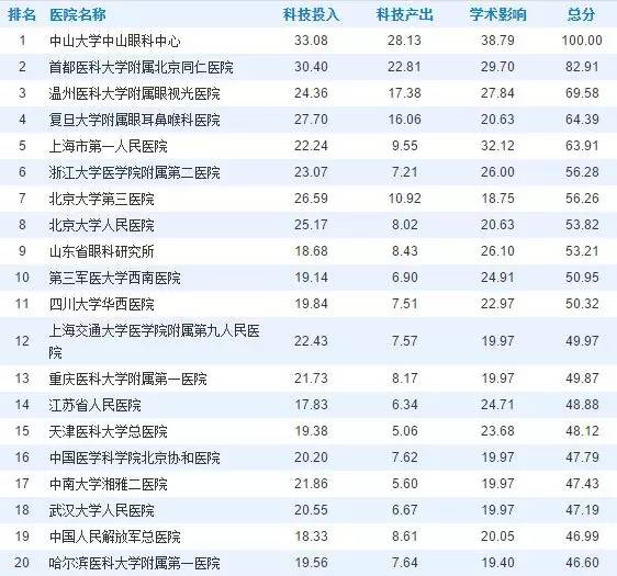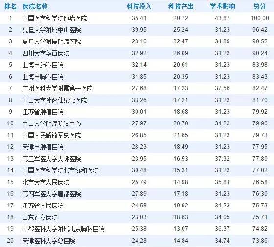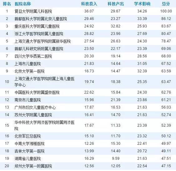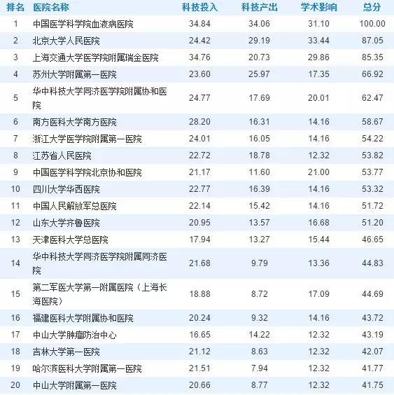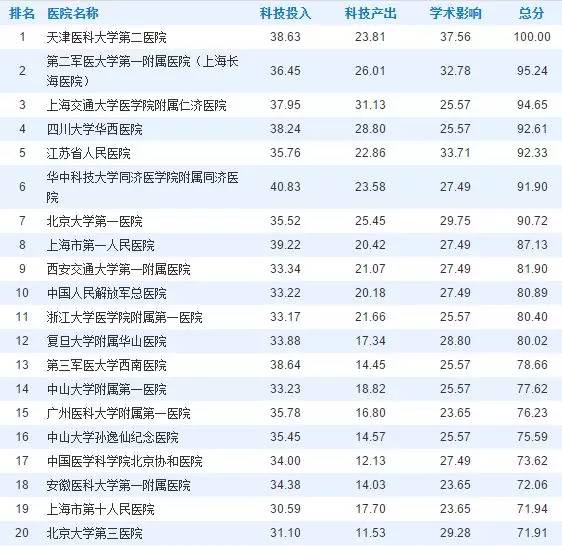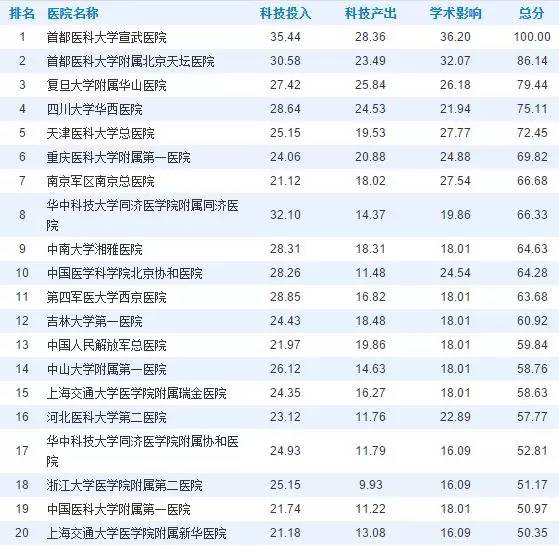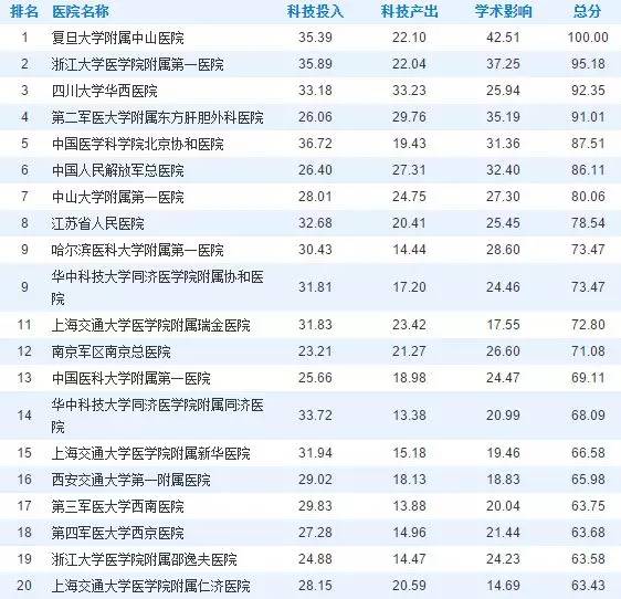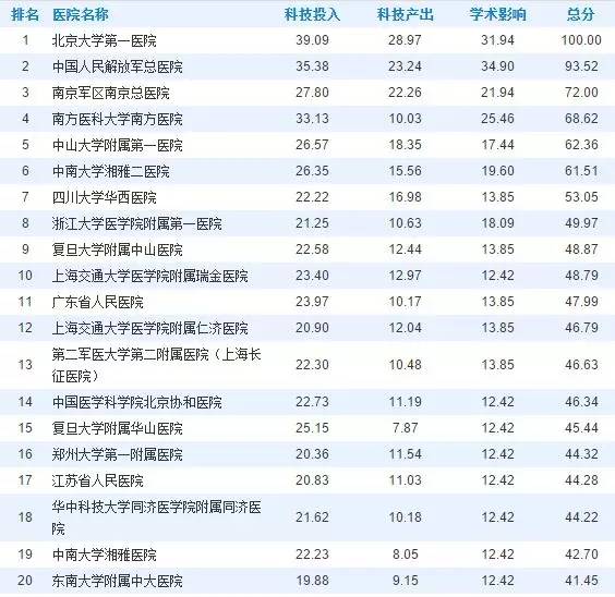 2015年度中國醫(yī)院科技影響力——主要學科排行榜發(fā)布