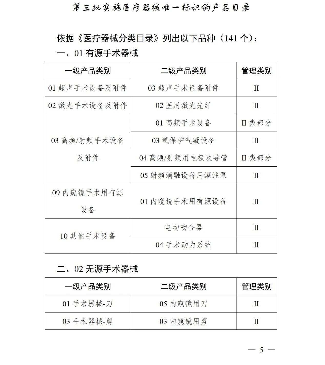 《第三批實(shí)施醫(yī)療器械唯一標(biāo)識(shí)的產(chǎn)品目錄》中包括141種醫(yī)療器械,如超聲手術(shù)設(shè)備附件、醫(yī)用激光光纖、高頻手術(shù)設(shè)備、電動(dòng)吻合器、血管縫合裝置、光學(xué)內(nèi)窺鏡、電子內(nèi)窺鏡、腹膜透析設(shè)備、起搏系統(tǒng)分析設(shè)備、活檢針、防護(hù)服、助聽(tīng)器、血細(xì)胞分析儀器等。