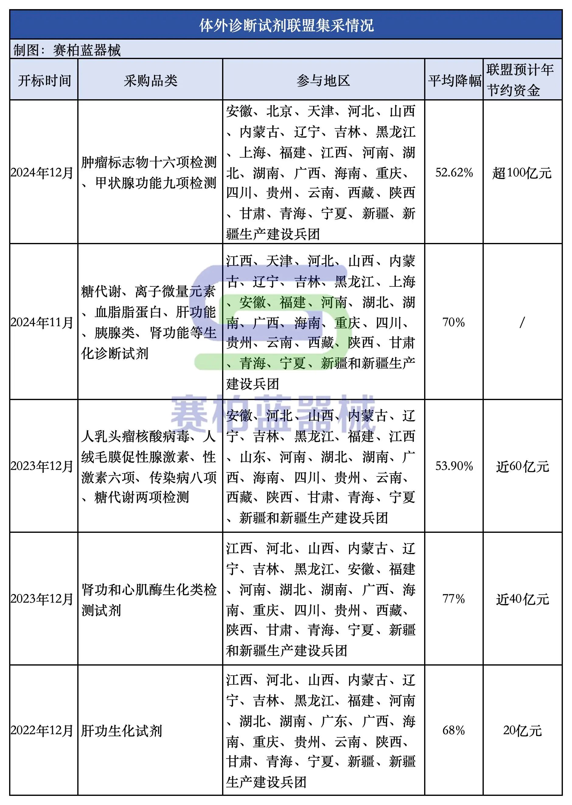 據(jù)報道,占采購需求量90%的羅氏診斷、雅培、貝克曼、西門子等進口企業(yè)以及邁瑞、安圖、新產業(yè)、邁克、亞輝龍等國內龍頭企業(yè),全部以超過50%的降幅擬中選。擬中選產品平均降幅52.62%,最高降幅為84.25%,預計一年可為聯(lián)盟省份醫(yī)療機構節(jié)約試劑采購費用超過100億元。