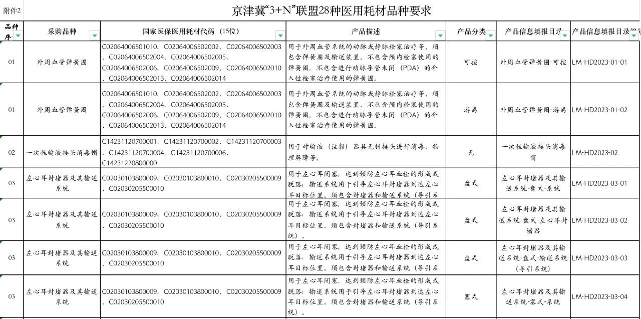 根據(jù)河南醫(yī)保局11月9日發(fā)布的采購文件,此輪采購品種包括外周血管彈簧圈、一次性輸液接頭消毒帽、左心耳封堵器及其輸送系統(tǒng)、醫(yī)用膠、止血夾、止血粉、止血紗布、止血海綿、止血非織布、顱內(nèi)支架(狹窄擴張)、顱內(nèi)取栓支架、透析用長期中心靜脈導(dǎo)管(TCC)、透析用臨時中心靜脈導(dǎo)管(NCC)、一次性使用醫(yī)用喉罩、一次性使用植入式給藥裝置專用針、心肌停跳液、外周溶栓導(dǎo)管、冠脈微導(dǎo)管、冠脈切割/棘突/乳突球囊、吹霧管、氣管支氣管支架、膽胰擴張球囊、神經(jīng)介入導(dǎo)引導(dǎo)管及支撐輔助導(dǎo)管、胸骨結(jié)扎帶、血栓保護裝置、經(jīng)外周中心靜脈導(dǎo)管、經(jīng)皮膽道支架以及消化介入注射針等28類醫(yī)用耗材。