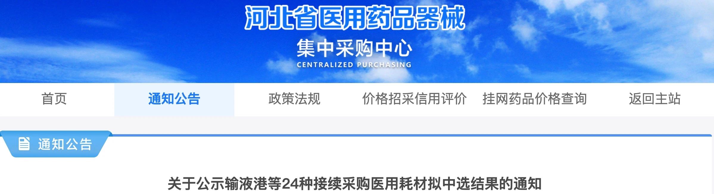 日,河北省醫(yī)用藥品器械集中采購中心發(fā)布《關(guān)于公示輸液港等24種接續(xù)采購醫(yī)用耗材擬中選結(jié)果的通知》。