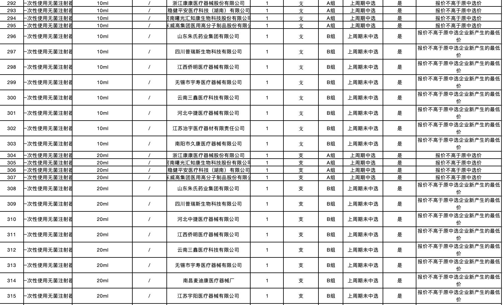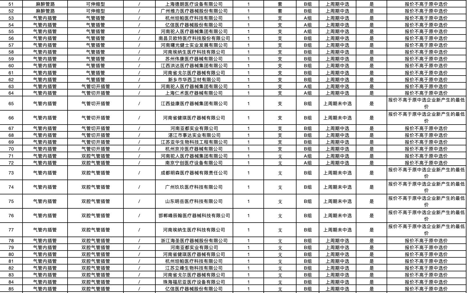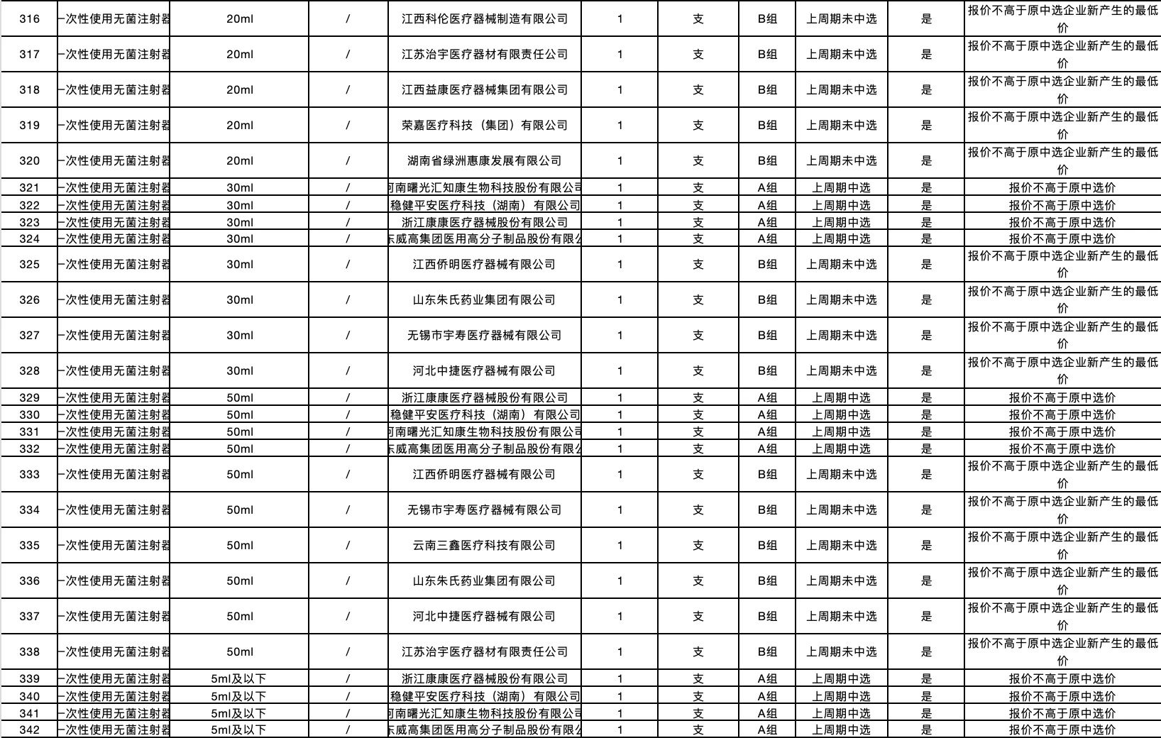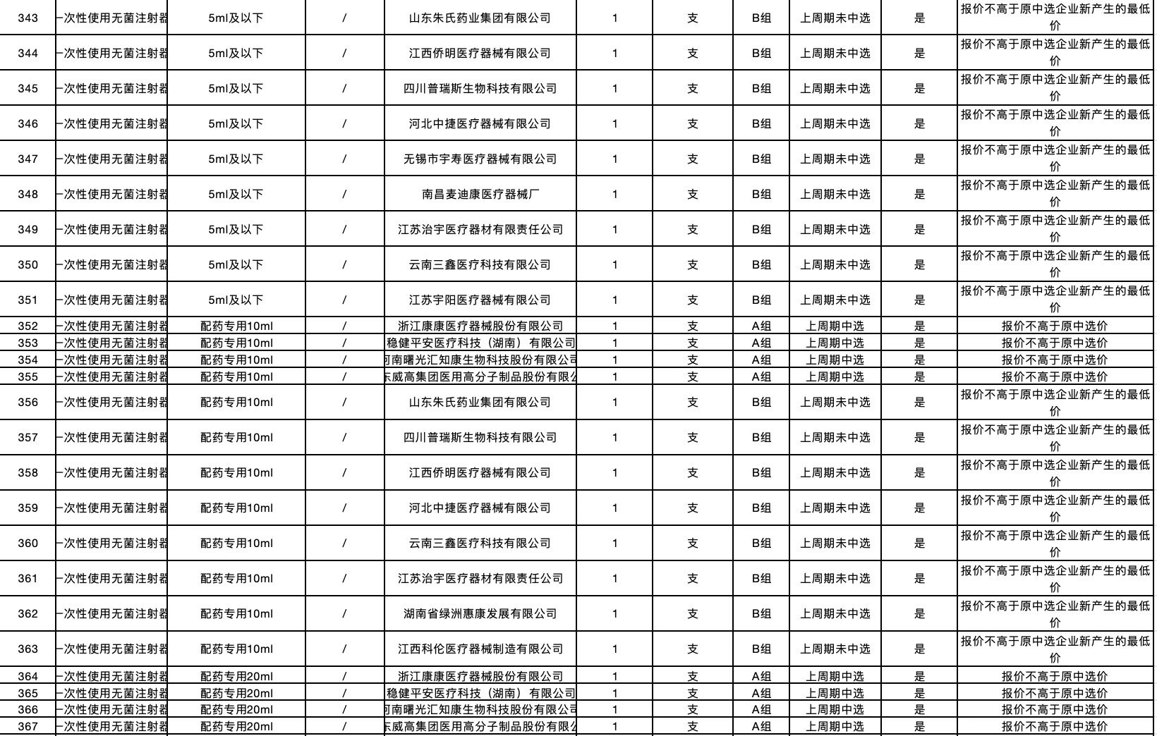 按照采購文件關(guān)于報價的規(guī)定,24個采購品種分47個產(chǎn)品分類進行報價,擬中選情況如下: