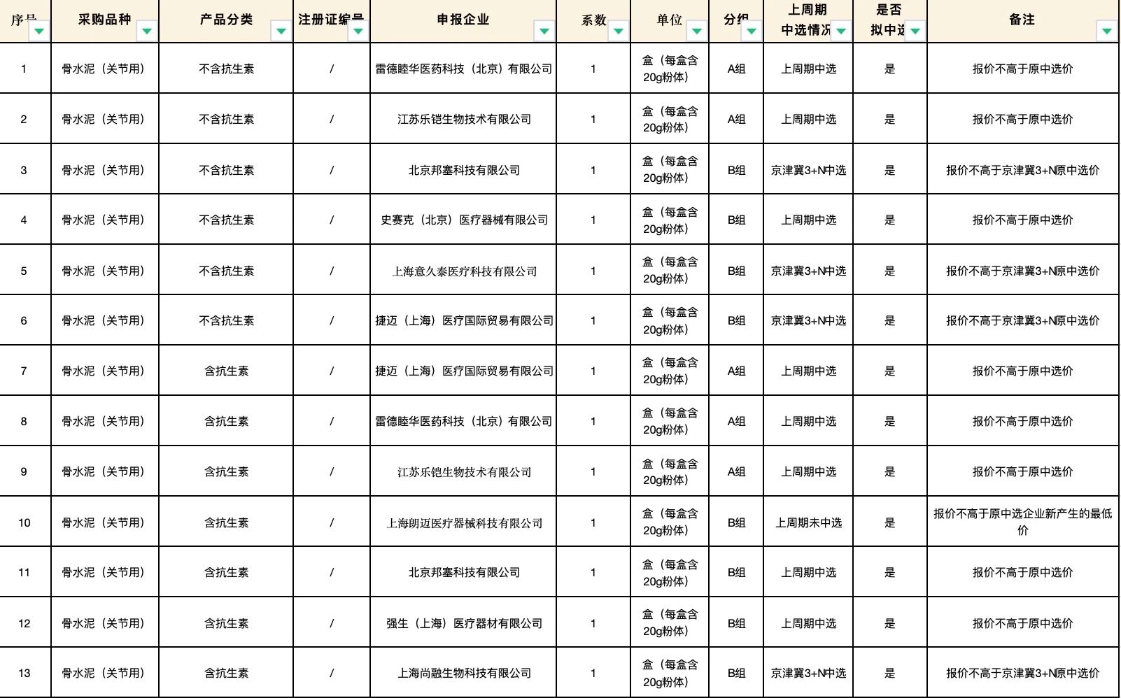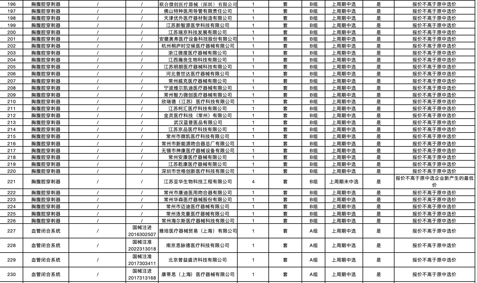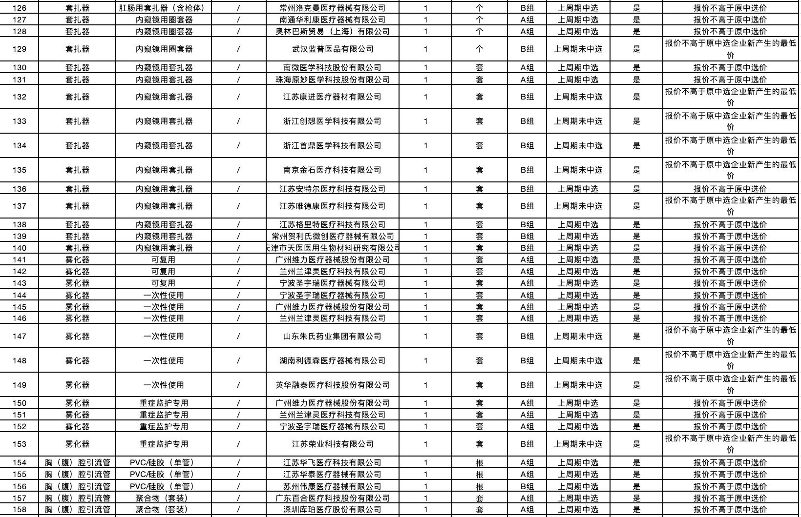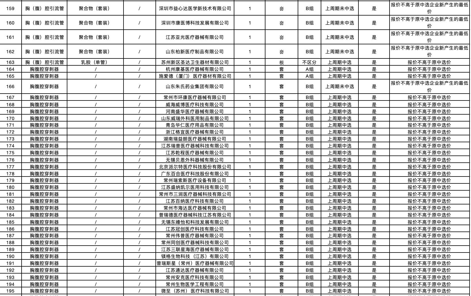 按照采購文件關(guān)于報價的規(guī)定,24個采購品種分47個產(chǎn)品分類進行報價,擬中選情況如下: