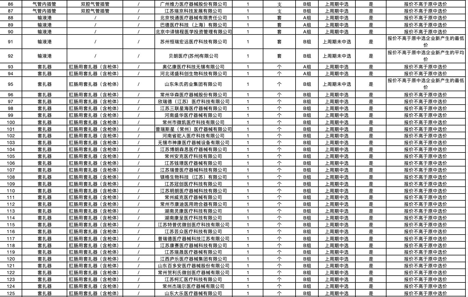 附:輸液港等24種接續(xù)采購醫(yī)用耗材擬中選結(jié)果: