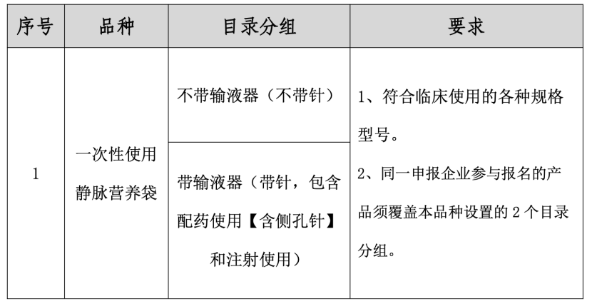 一次性使用靜脈營養(yǎng)袋、一次性使用血氧飽和度傳感器的采購品種及具體要求如下(尚在征求意見階段):