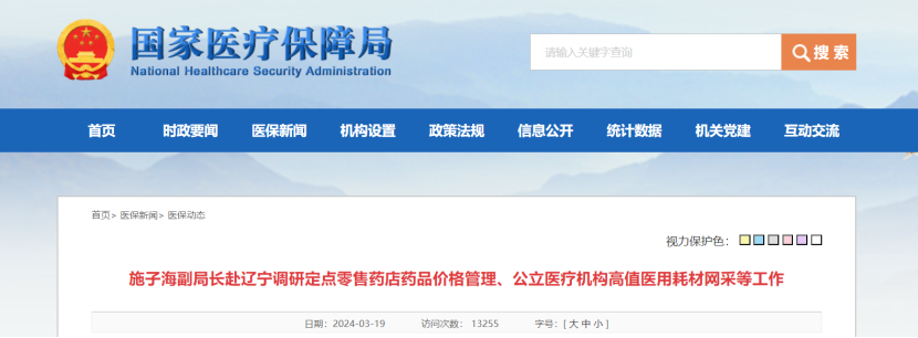 近日,國家醫(yī)保局黨組成員、副局長施子海帶隊(duì)赴遼寧調(diào)研定點(diǎn)零售藥店藥品價(jià)格管理、公立醫(yī)療機(jī)構(gòu)高值醫(yī)用耗材網(wǎng)采等工作,實(shí)地調(diào)研定點(diǎn)零售藥店和醫(yī)療機(jī)構(gòu),聽取定點(diǎn)零售藥店、連鎖公司和醫(yī)療機(jī)構(gòu)相關(guān)負(fù)責(zé)同志和代表的意見建議。