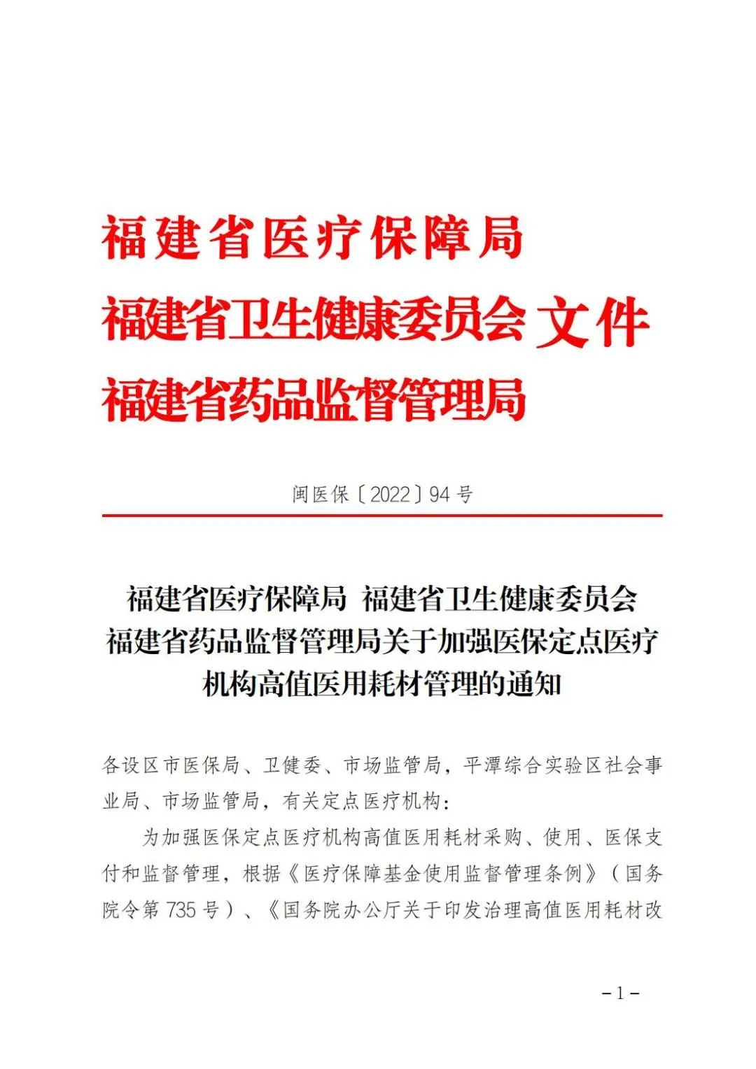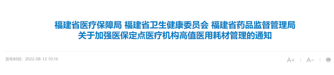 8月12日,福建省醫(yī)療保障局 福建省衛(wèi)生健康委員會(huì) 福建省藥品監(jiān)督管理局聯(lián)合發(fā)布了《關(guān)于加強(qiáng)醫(yī)保定點(diǎn)醫(yī)療機(jī)構(gòu)高值醫(yī)用耗材管理的通知》(以下簡(jiǎn)稱(chēng)《通知》)(原文見(jiàn)文末)。