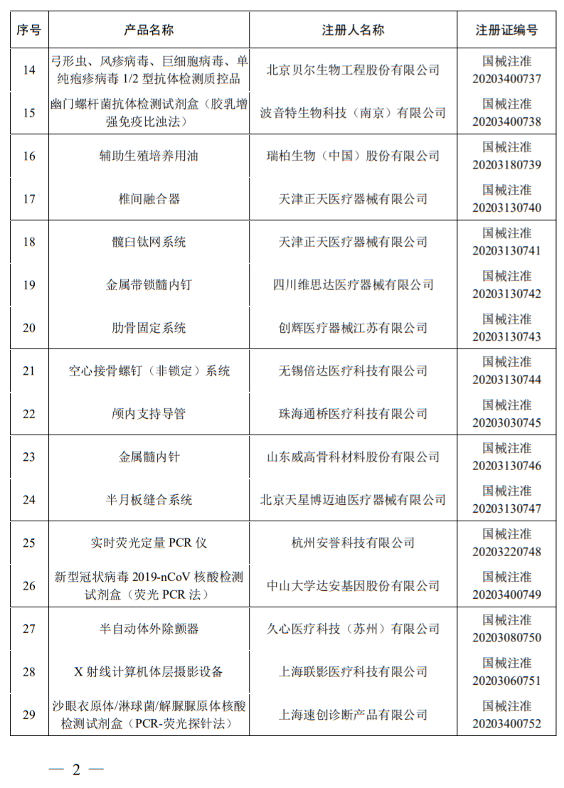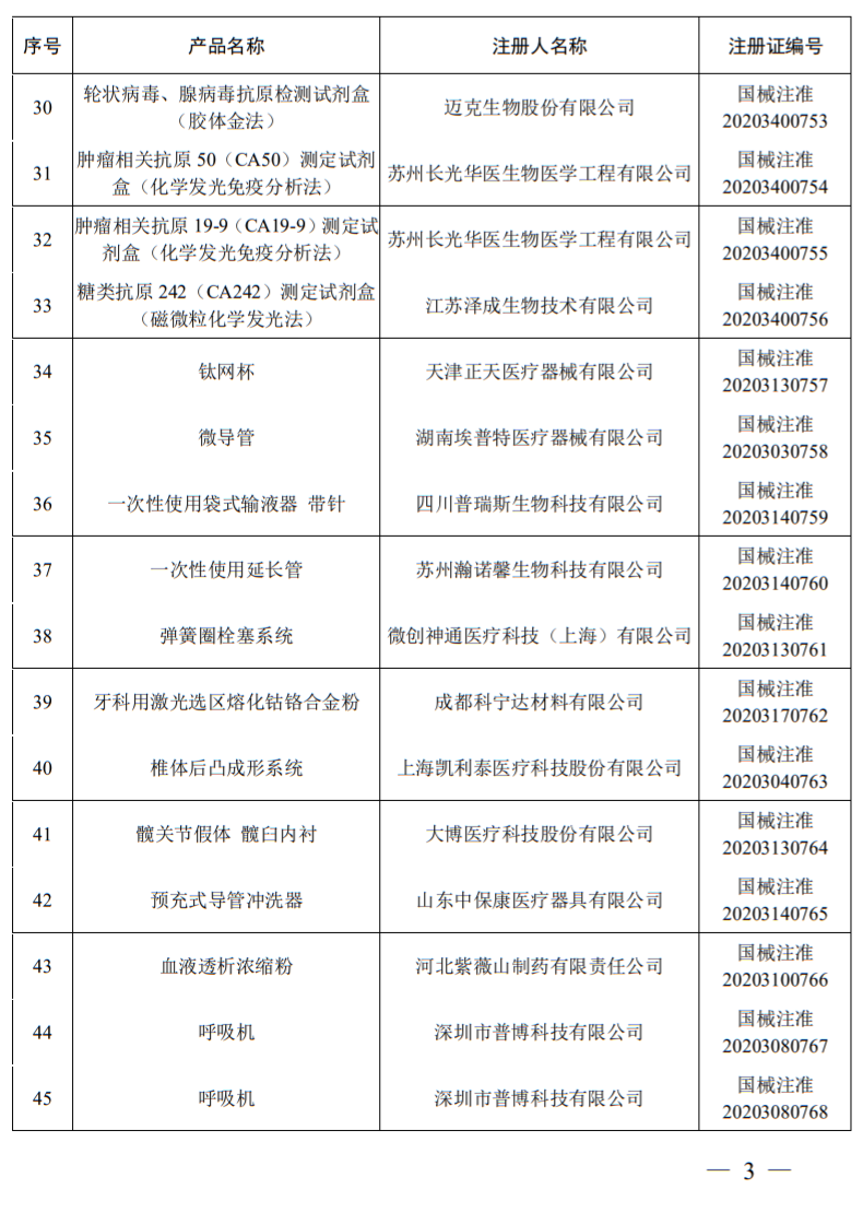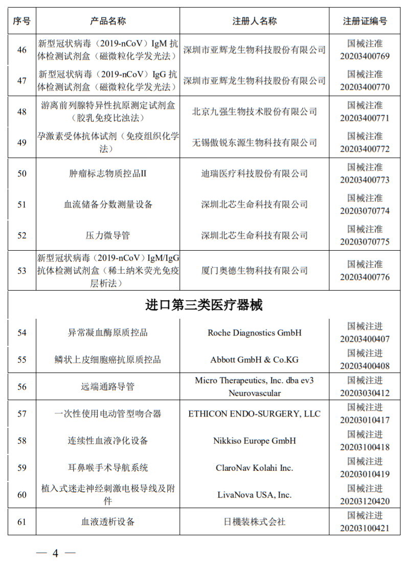 上述公告顯示,2020年9月,國(guó)家藥品監(jiān)督管理局共批準(zhǔn)注冊(cè)醫(yī)療器械產(chǎn)品86個(gè)。其中,境內(nèi)第三類醫(yī)療器械產(chǎn)品53個(gè),進(jìn)口第三類醫(yī)療器械產(chǎn)品16個(gè),進(jìn)口第二類醫(yī)療器械產(chǎn)品17個(gè)。