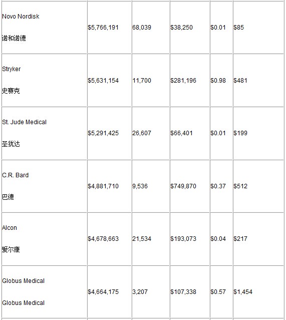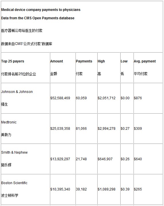 以下為付款排名前25位的醫(yī)療器械公司數(shù)據(jù):