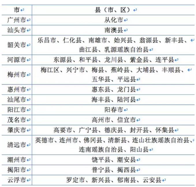 附:廣東省50個山區(qū)縣名單:
