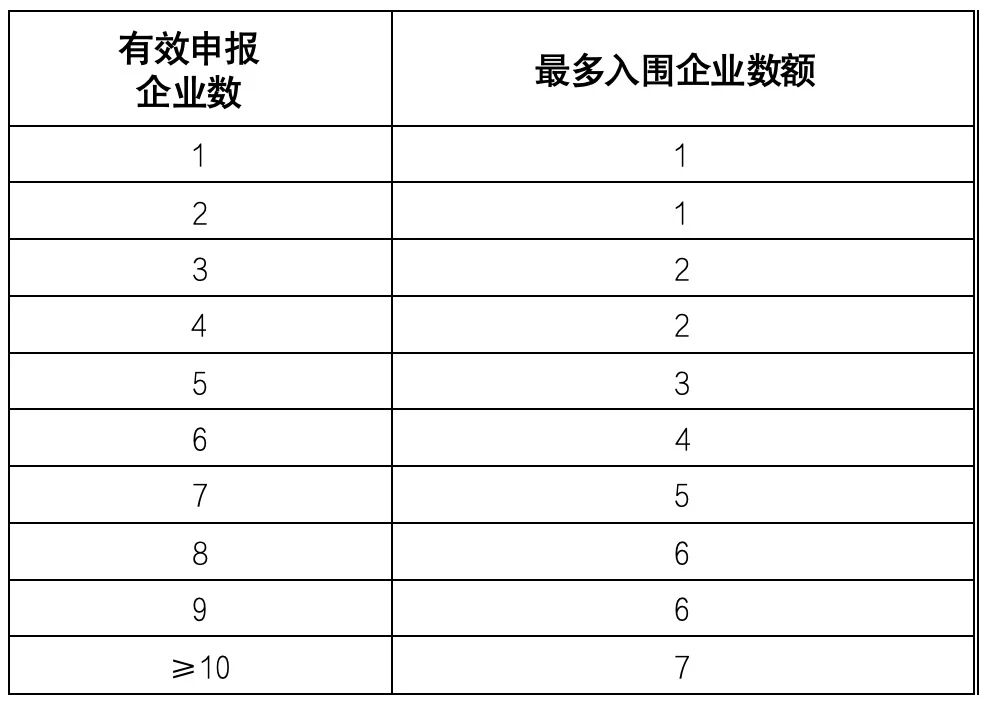 最多入圍企業(yè)數(shù)量詳見(jiàn)下表: